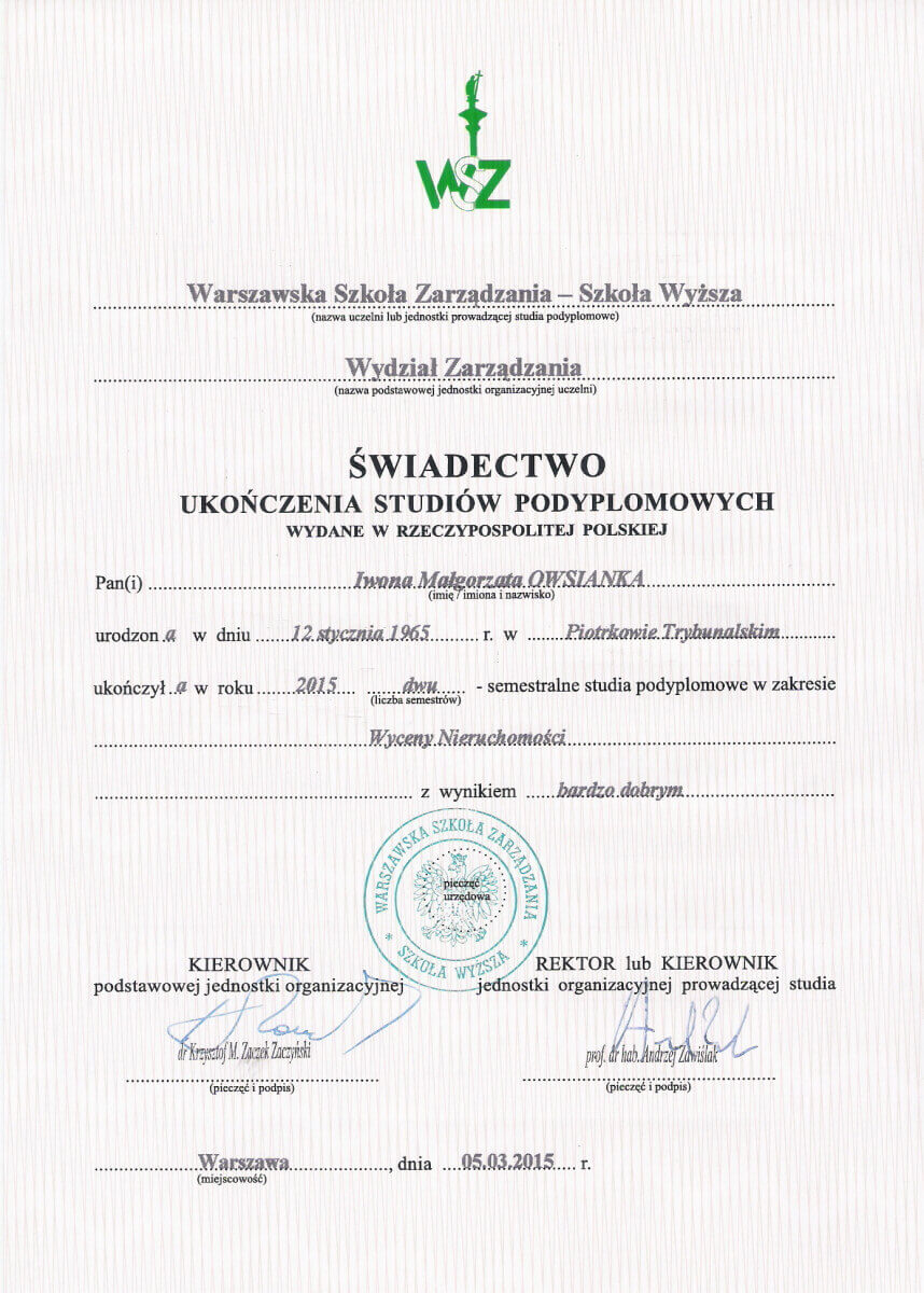 Każda wycena poprzedzona jest wizją lokalną nieruchomości.